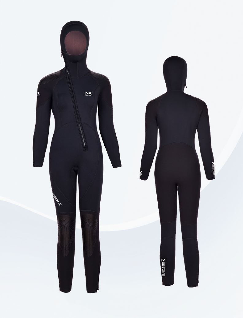 The suit is constructed with high-quality, warm, and flexible Yamamoto neoprene. It comes with a nylon exterior for unmatched durability and either an open-cell interior for superior warmth.